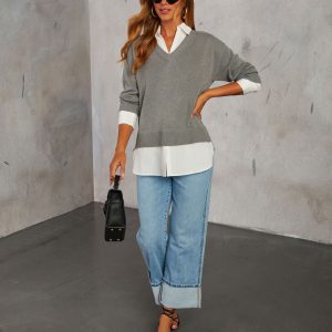 Be the first to review “Xira Poplin Contrast Pullover Sweater”