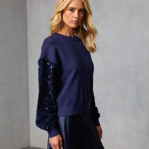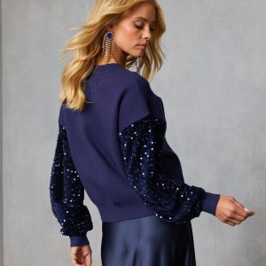 Be the first to review “Yumi Contrast Sequin Knit Sweater”