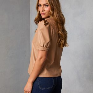 Zadig Leather Puff Sleeve Top